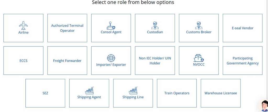 - Role Selection: Choose your role (Exporter, Importer, or CHA).