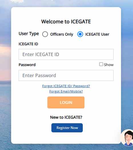 - Visit the New Portal: Go to icegate.gov.in and click on Login / Sign Up.