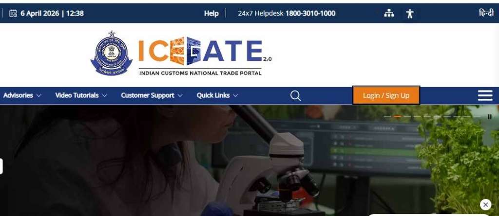 - Visit the New Portal: Go to icegate.gov.in and click on Login / Sign Up.
