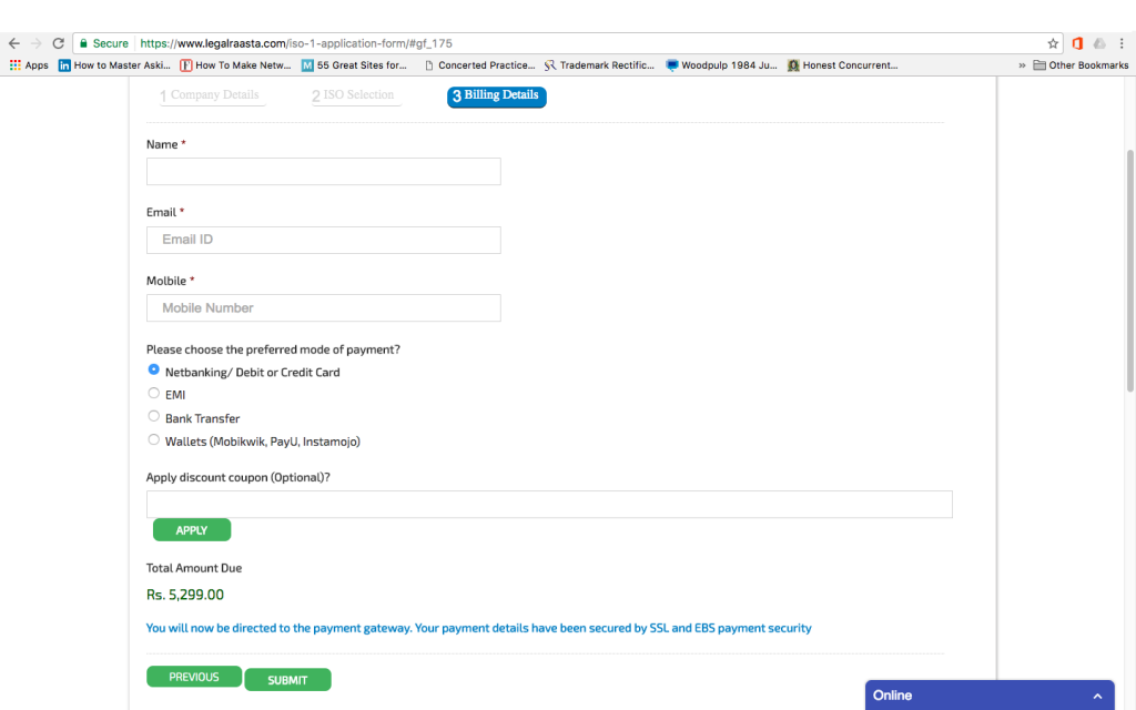 And we provide a variety of payment options. You have a choice to select from net banking/debit or credit card/EMI/bank transfer (IMPS, RTGS, NEFT), and your choice of mobile wallet (Mobikwik, PayU, Instamojo). In addition to this, you can also pay from your Paytm wallet by speaking to our sales executives on the phone. With all these facilities, you can also apply your valid discount coupon only if there is any. Afterward, click on submit and you will be redirected to the appropriate payment gateway for secure payment.