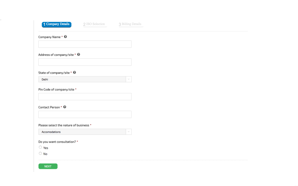 Firstly, go to our website and click the ISO registration option. Then click on “ISO registration” and let the process begin. Fill the ISO registration form to get started as well as fill in the text boxes with your contact details and click on “Proceed.”